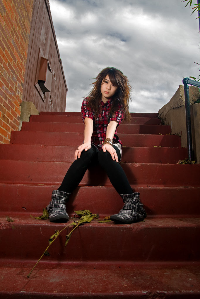 Comments: Kia joined us on a shoot to take pictures, but we also used her as a model. =P This is somewhere near the Johnson building at school I believe. Eugene Lee simply held a silver reflector for me to fill in the light on her face.